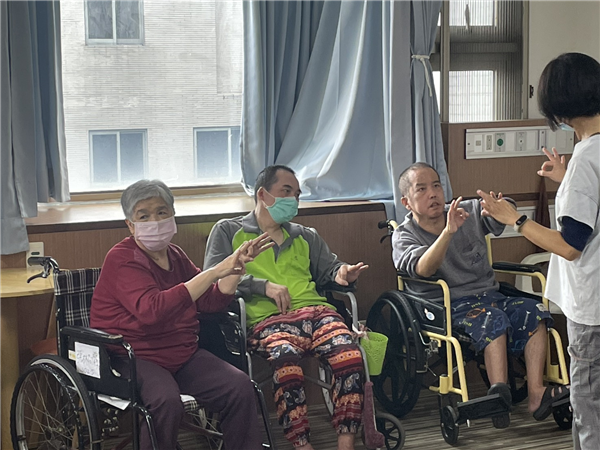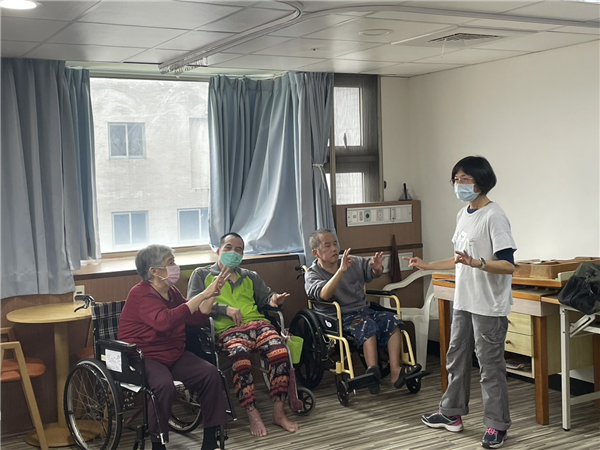 活動過程中,志工們以親切溫柔的語調與住民互動,現場氣氛輕鬆活潑。住民大多能跟隨節奏完成簡易動作,部分住民會主動分享過往回憶,現場時而傳來笑聲與掌聲。